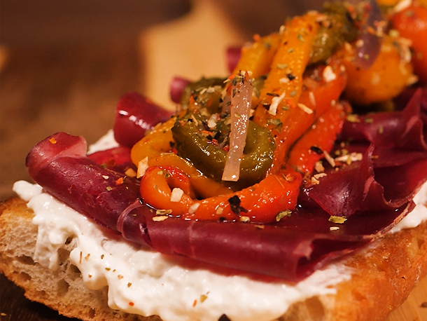 Carmencita · Videorecipes · Burrata and bell peppers toast