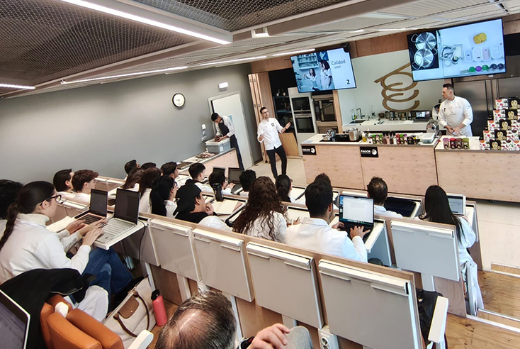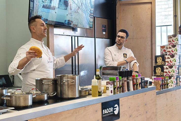 En el marco de esta formación, en esta ocasión (y por primera vez) hemos querido sumar una mirada inspiradora desde la alta cocina y el emprendimiento gastronómico. Para ello, hemos contado con Ferdinando Bernardi, chef con estrella Michelin, que ha compartido su trayectoria, los inicios de su restaurante y la evolución de su propuesta. Lo hizo acompañado de Paco López, miembro de nuestro Departamento de Aplicación Culinaria, con quien compartió la formación. El cocinero italiano, que es embajador de marca de Carmencita, ha aportado una visión cercana y muy útil para quienes están construyendo su camino profesional con ambición y oficio.
