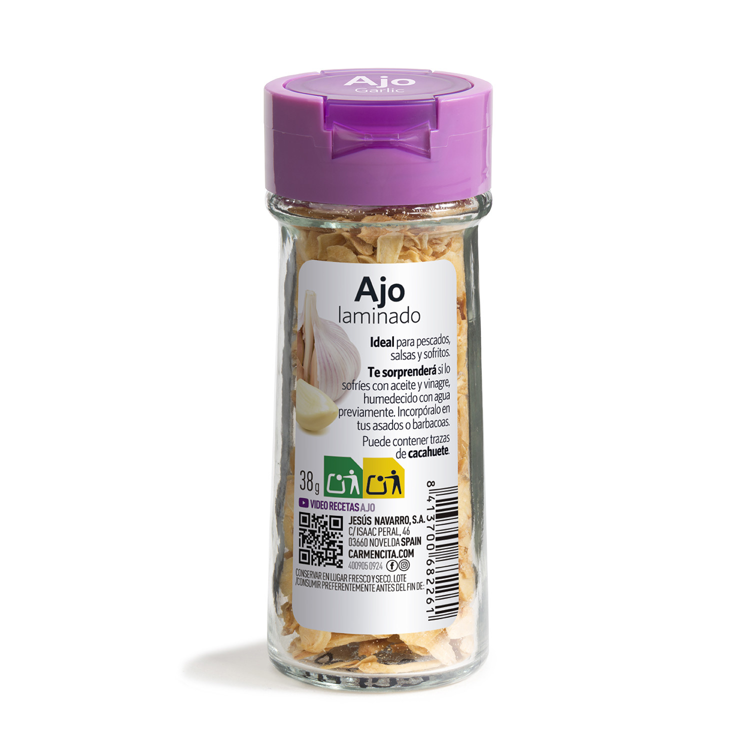 Nuestro Ajo laminado te permite añadir textura, sabor y presencia a tus platos sin necesidad de pelar y trocear ajos. ¡Te ahorra trabajo! Y no solo eso. También te ahorra el tener que lavarte las manos después de manipularlo. Un detalle importante que evita que tu dinámica de cocinado se vea interrumpida.