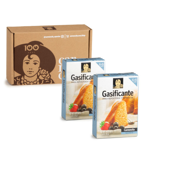 Contiene 2 unidades de gasificante para repostería y refrescos.