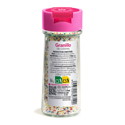 Ingredientes: azúcar, almidón de trigo, agua, jarabe de glucosa, colorantes [E-160a(ii), E-100, E-120, E-131, E-132], concentrado de productos vegetales (cártamo, limón, remolacha), manteca de coco y agente de recubrimiento (E-901).