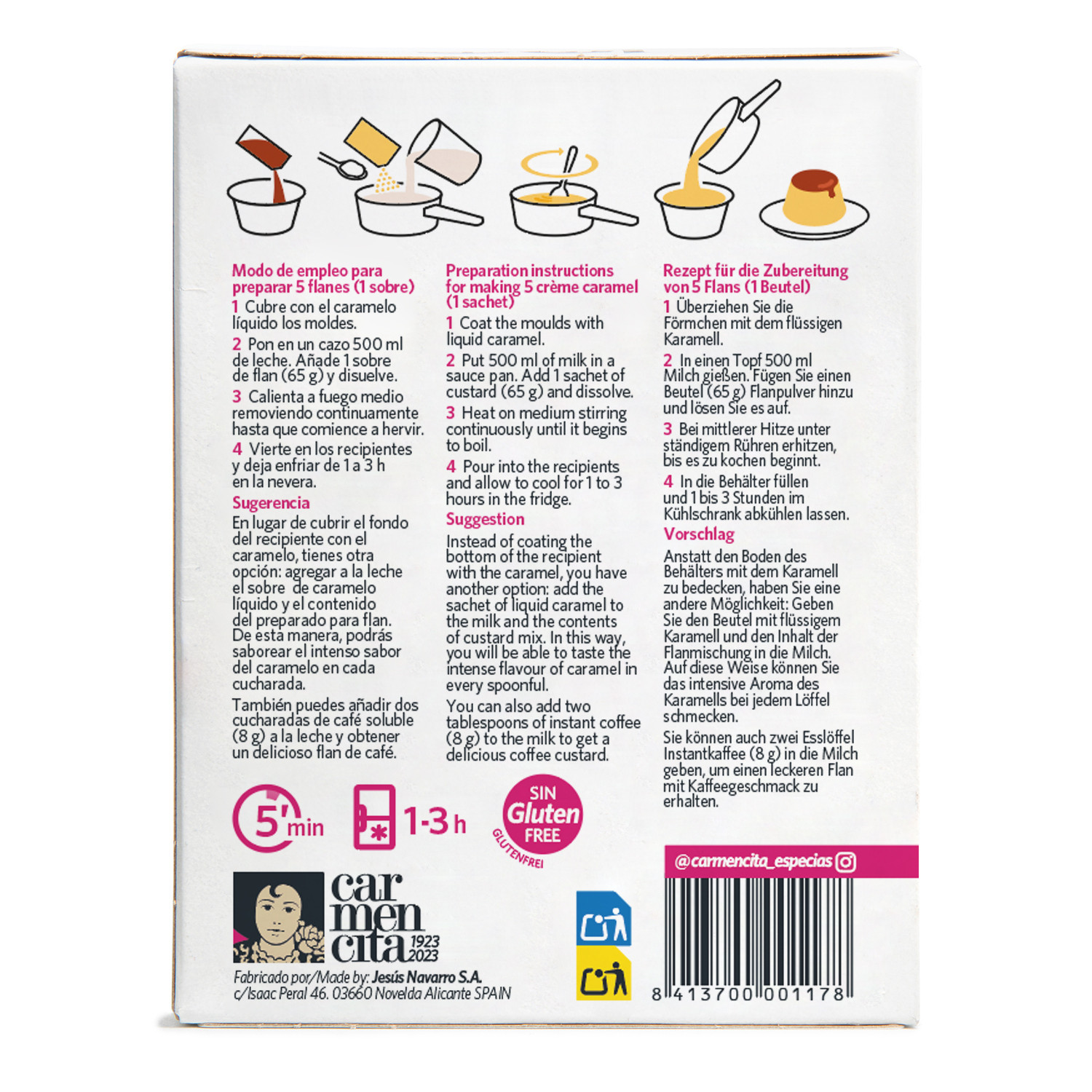 Modo de empleo para preparar 5 flanes (1 sobre)