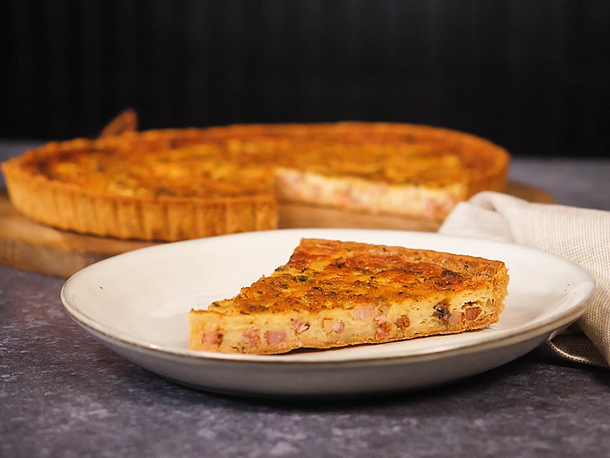 La quiche es una receta clásica francesa, deliciosa tarta salada con queso, huevos y crema. Dale tu toque especial con las especias, (nuez moscada, pimienta blanca y sal marina con hierbas).